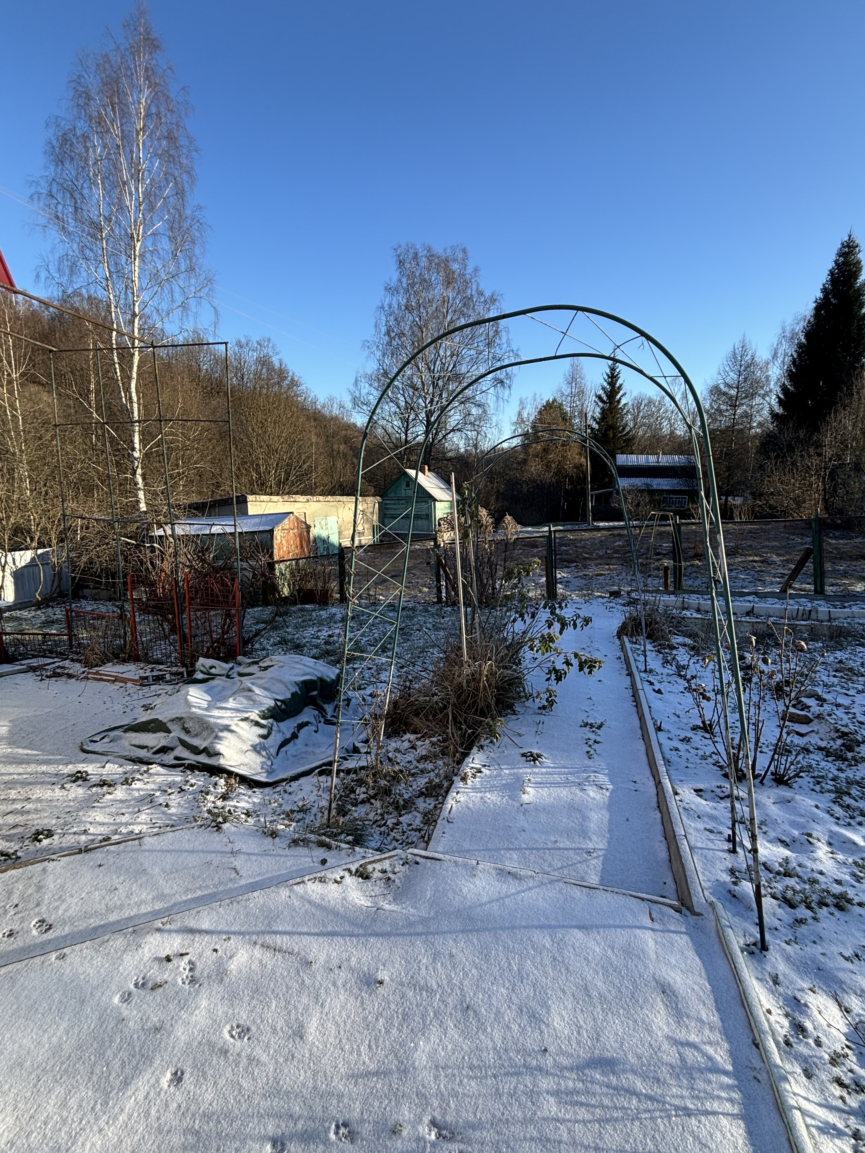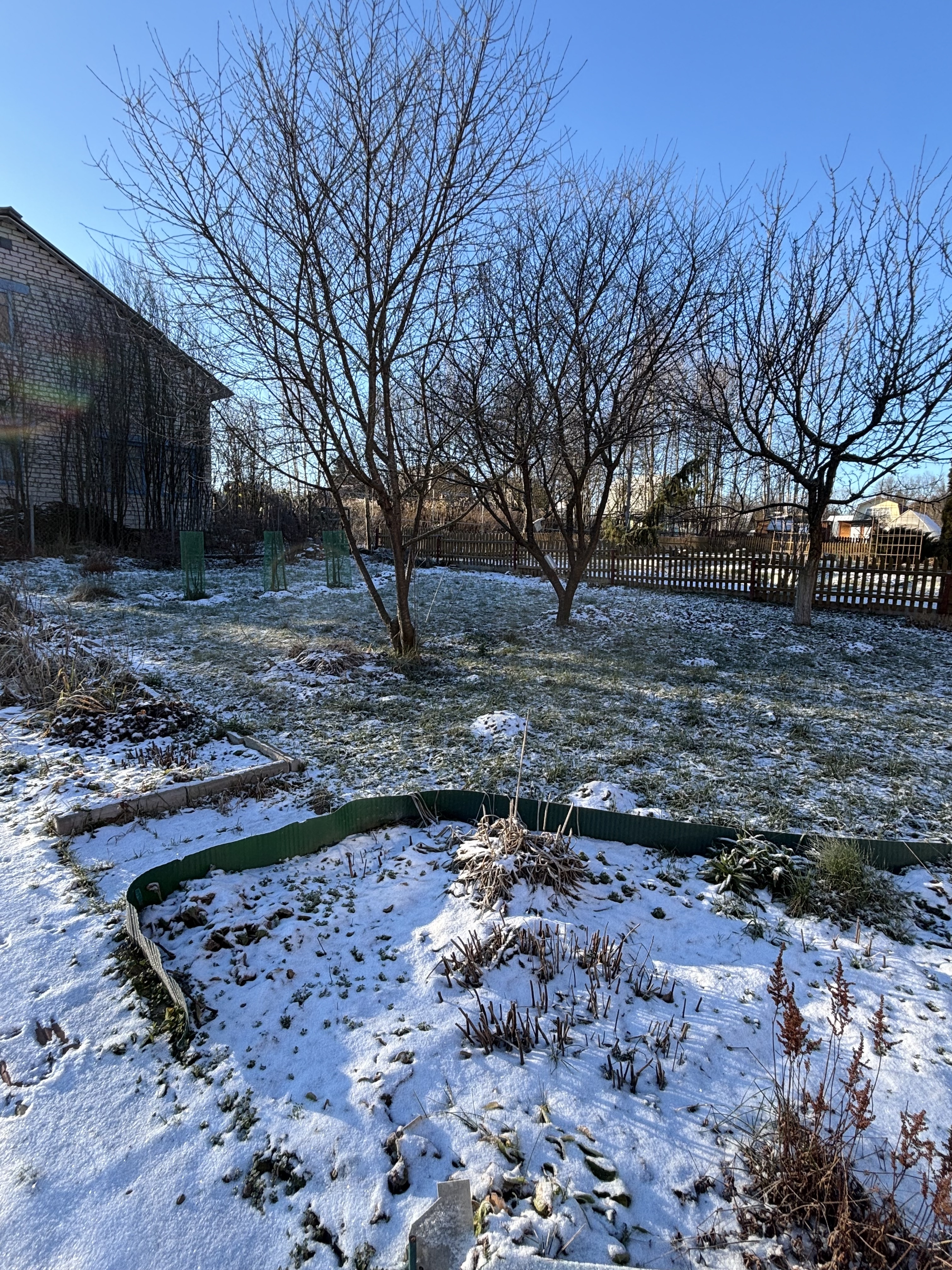 ✅Участок состоит из двух частей , расположены параллельно друг против друга ,огорожен забором из профлиста и сетки рабицы.