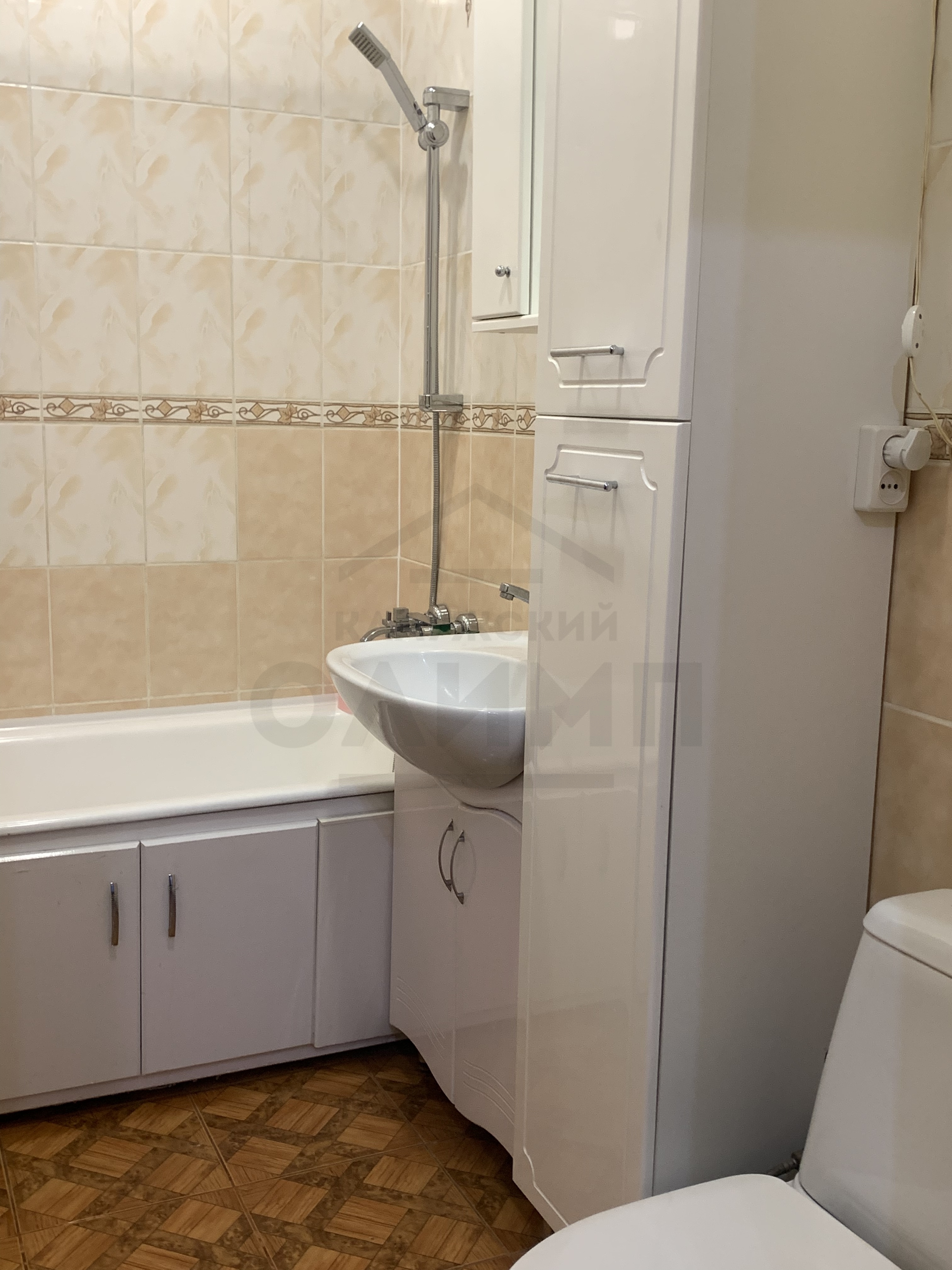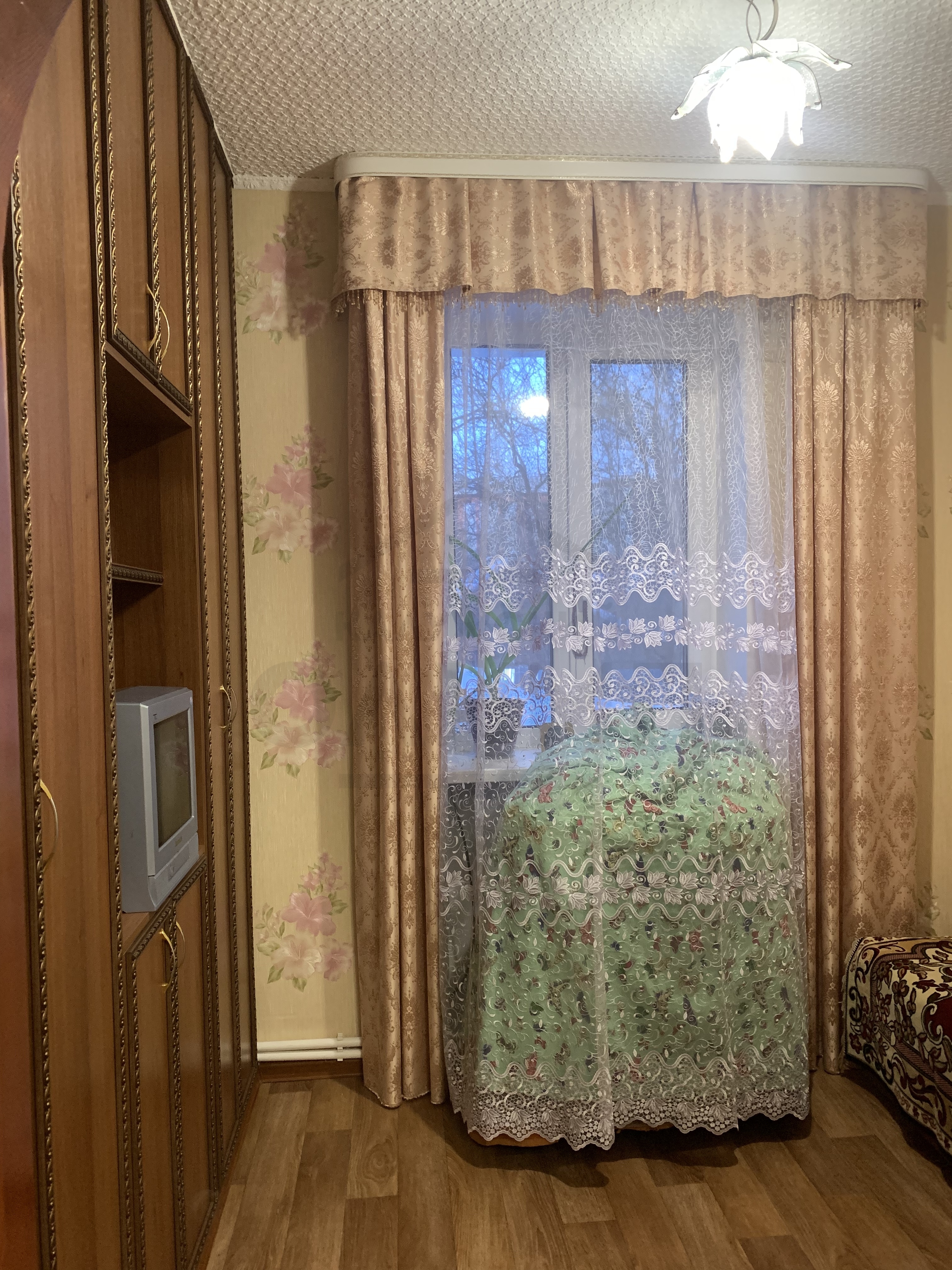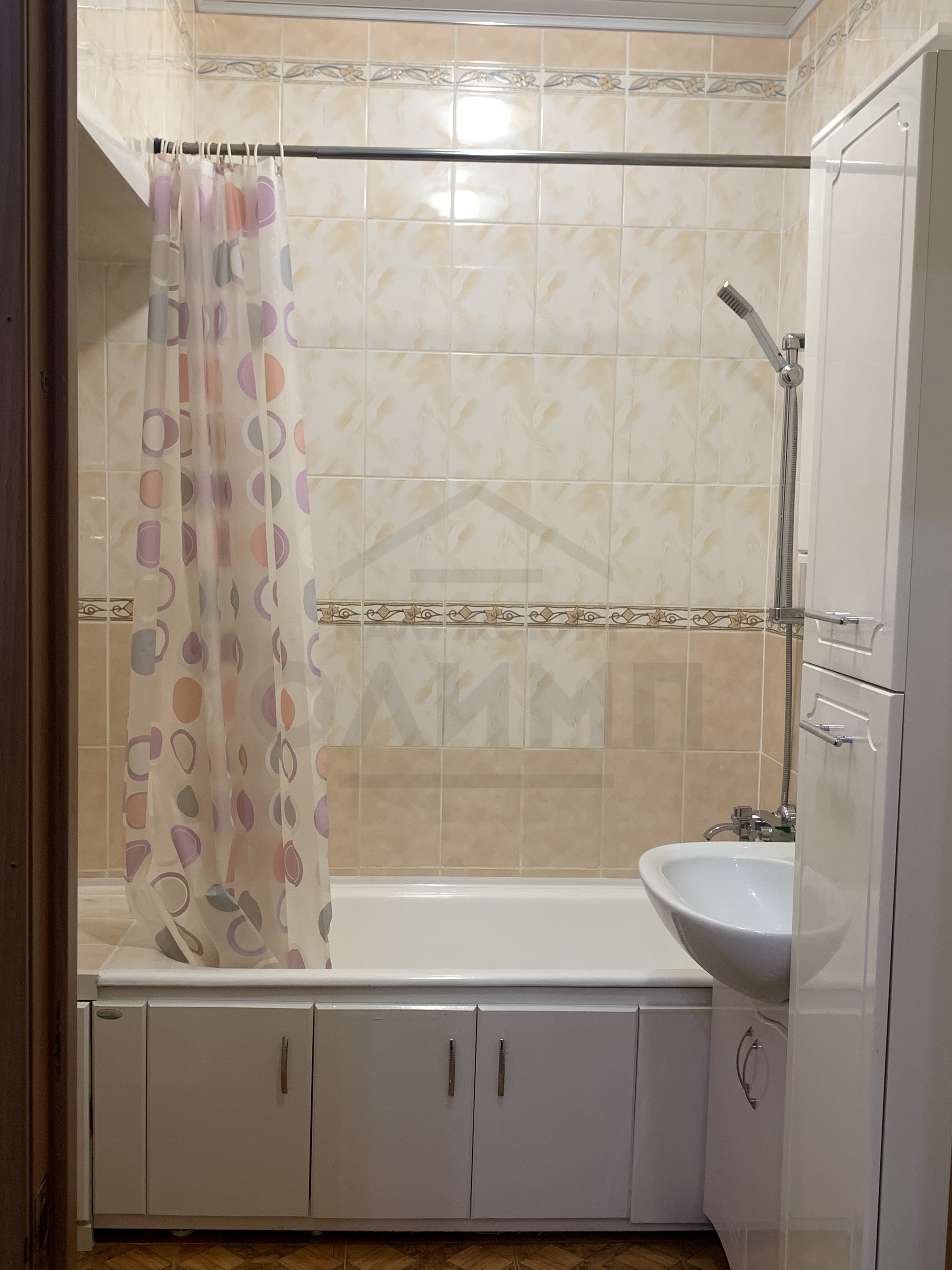 ✅На стенах обои светлых тонов,на полу ламинат,ванная комната -стены и пол- выложена керамической плиткой