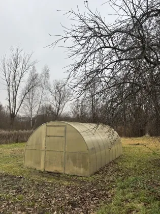 - На территории участка имеется гараж, подвал, хозпостройка, теплица.