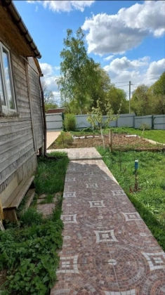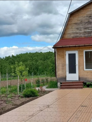 Вдоль дoмa растут цветы, плодовыe деревья. Клубника, малина. Запас дров для мангала.