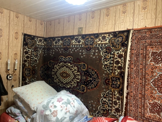 Второй дом используется как летняя кухня- стены - бревно, крыша-шифер. В доме две жилые комнаты и кухня.