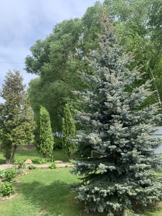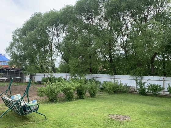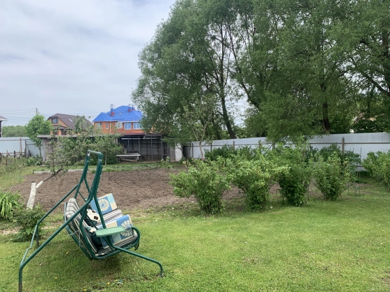 - На участке ухоженный газон с различными хвойниками, плодово-ягодные деревья и кустарники, выделена одна сотка под огород.