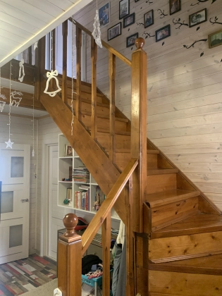 - На первом этаже кухня гостиная, гардеробная, санузел и ванная , терраса, прихожая