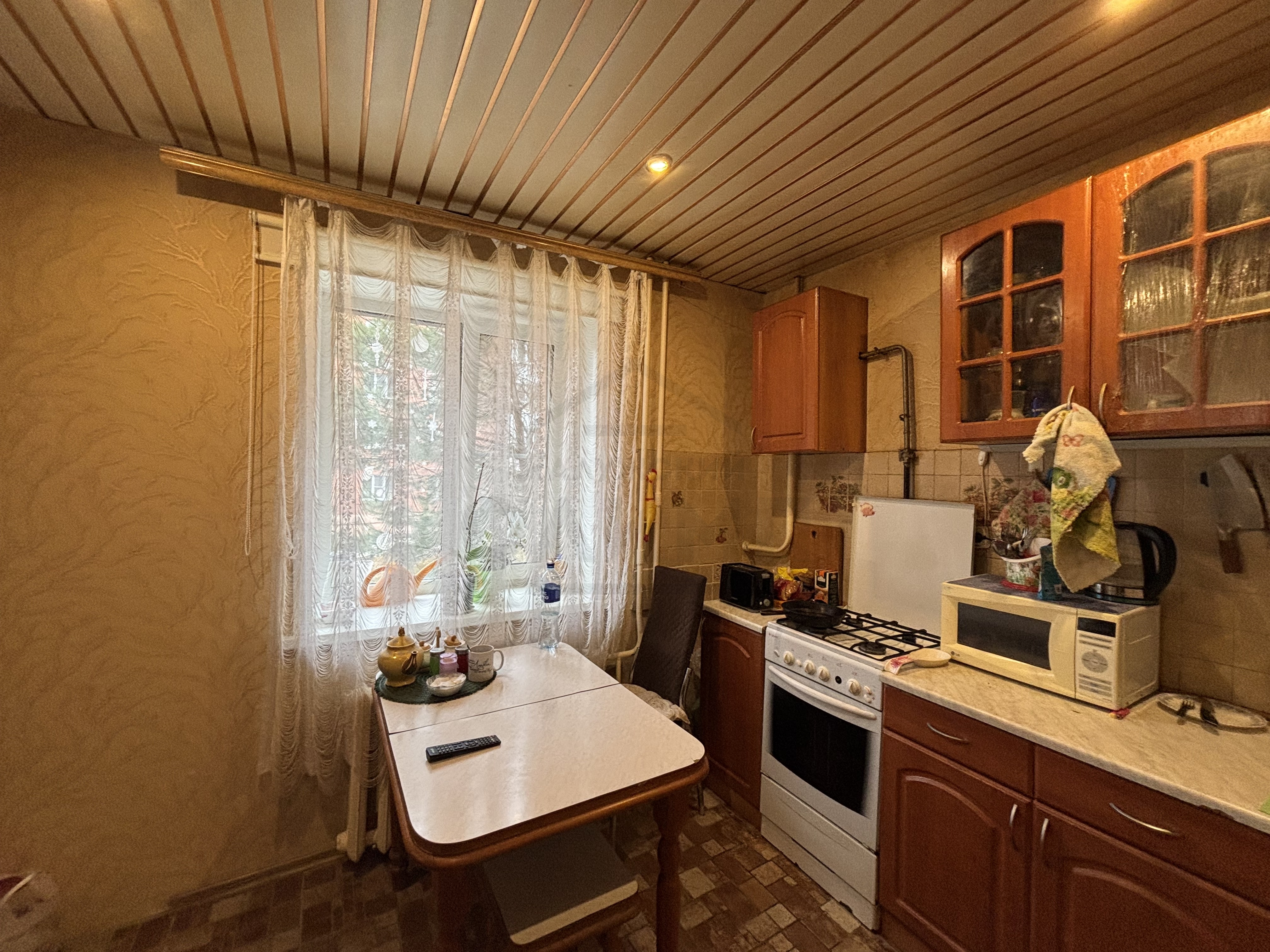 - В квартире косметический ремонт Окна ПВХ, на полу в кухне и санузле - плитка, в комнате и прихожей-ламинат, стены в санузле выложены керамической плиткой, в комнате и прихожей стены поклеены обоями светлых тонов.
