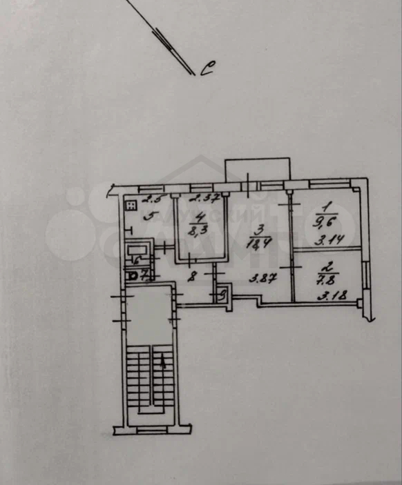 В избранное 4-комнатная квартира (59 м²)