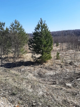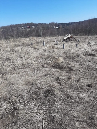 Рядом пруд - доступная вода для полива, а также родник с очень вкусной питьевой водой. Есть колодец под септик. 9-ть колец. На участке распланированы грядки, березовый островок, посажены сосны. Есть кусты ежевики.