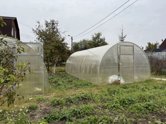 - На участке установлены две теплицы, пяти кубовая емкость для воды,туалет.