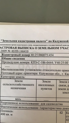 | Кадастровый номер участка | 40:25:000075:454 |